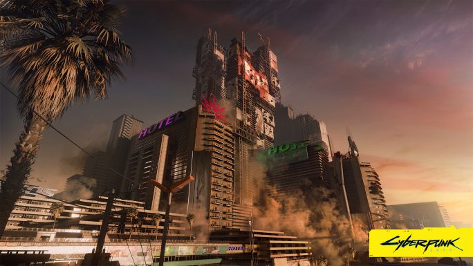 De farver repræsenterer et miljø med futuristisk teknologisk æstetik, social ulighed og forurening.